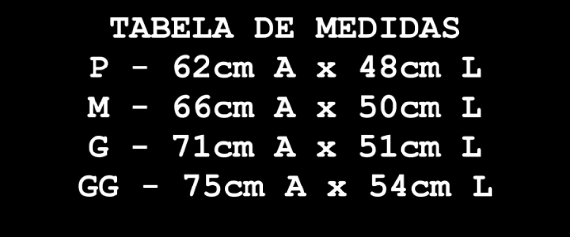 100% algodão de alta gramatura, gola canelada de 3cm, estampa em silkscreen
